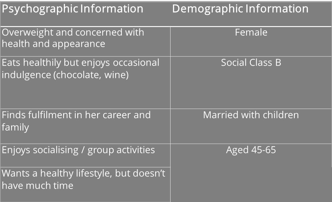 The table below shows the demographic and characteristics of a female gym-goer :